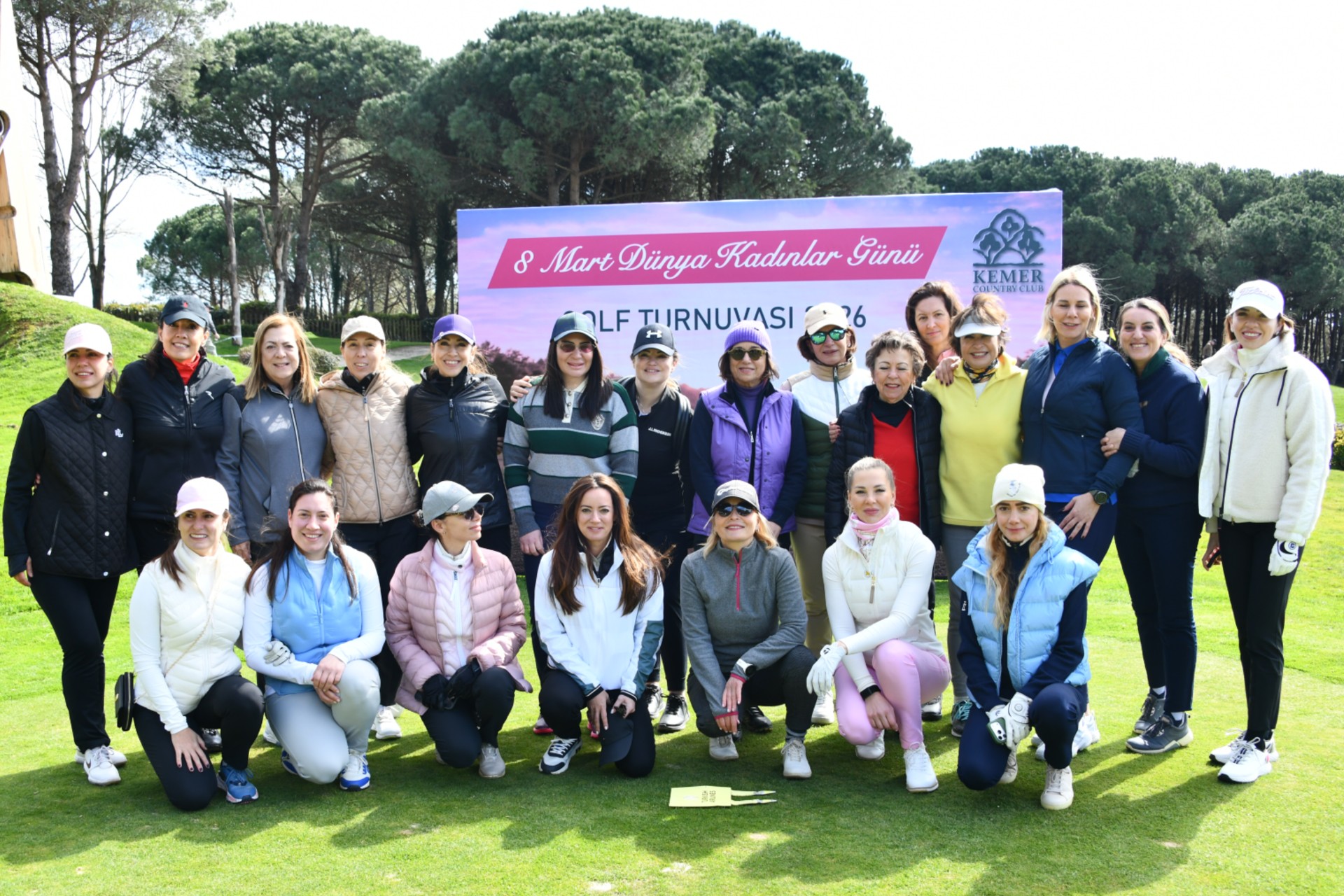 Kemer Golf Kulübü üyeleri 8 Mart Dünya Kadınlar Günü’nü her yıl olduğu gibi yine sahadaydı. Kemer Golf Kulübü’nün erkek üyelerinin de mücadele ettiği turnuvaya dört oyuncudan oluşan 15 takım katıldı. Güzel bir havada oynanan turnuva keyifli anlara sahne oldu. Organizasyona katılan tüm kadınlar sahaya çıkmadan önce 8 Mart Dünya Kadınlar Günü panosunun önünde hatıra pozu verdi.